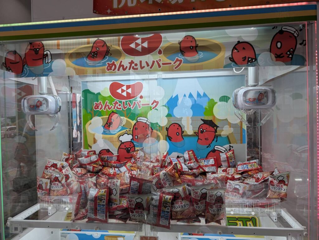 また、めんたいパークの入口を中心にクレーンゲームやガチャガチャが用意されており、子供を中心に人気を集めていました。