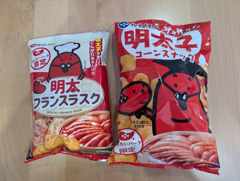 パーク内をひと通り楽しんだあとはお目当ての直売所へ向かい「ご家庭用切れ子からし明太子」や「かねふく明太からし高菜」「いか明太」などを購入しました。